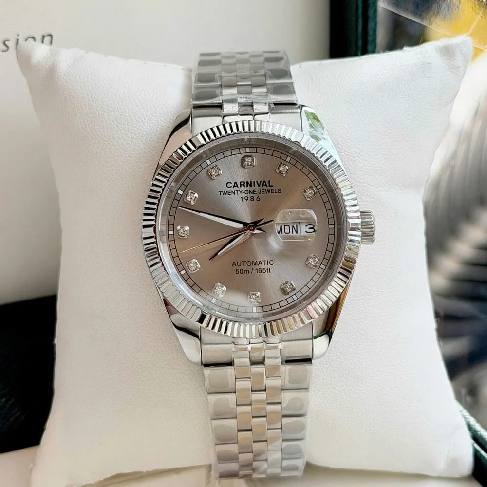 Sức mạnh nội tại của Đồng Hồ Carnival Nam 8131G-VT-XAM đến từ bộ máy cơ tự động (Automatic) cao cấp. Với 21 chân kính (Twenty-One Jewels), bộ máy này vận hành cực kỳ mượt mà, giảm thiểu ma sát và gia tăng tuổi thọ đáng kể.