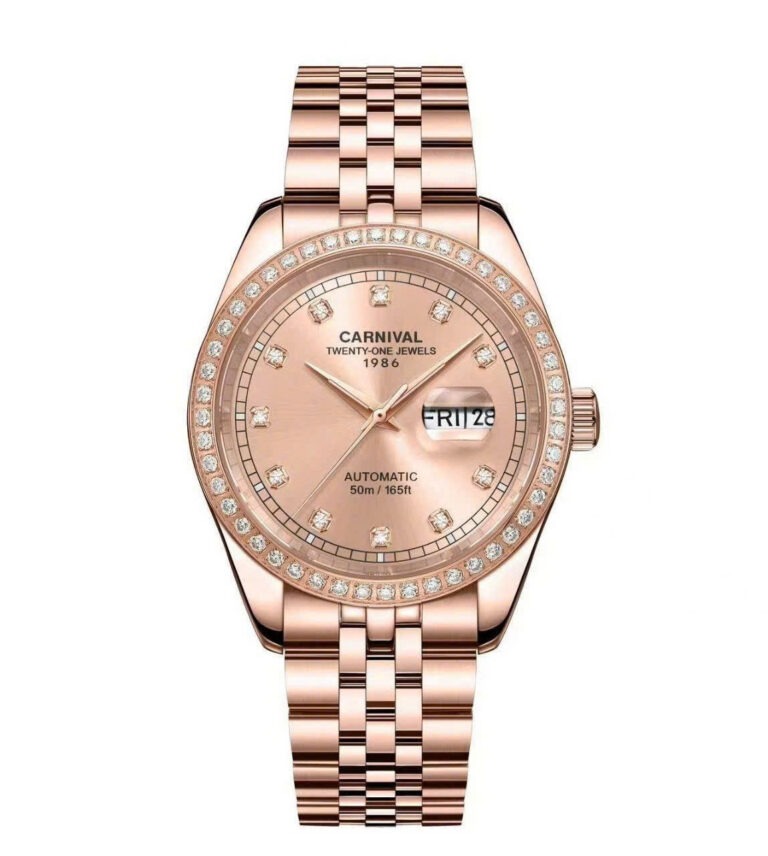 Trong thế giới phụ kiện nam giới, màu vàng hồng (Rose Gold) luôn được xem là biểu tượng của sự vương giả, tinh tế và có phần lãng mạn. Không rực rỡ như vàng vàng, cũng không lạnh lùng như bạc, sắc thái này mang lại một vẻ đẹp ấm áp và vô cùng thời thượng. Chiếc Đồng Hồ Carnival Nam 8131G2-VH-NN chính là minh chứng rõ nét nhất cho việc kết hợp hoàn mỹ giữa màu sắc thời thượng và kỹ nghệ chế tác đồng hồ cơ học đỉnh cao.