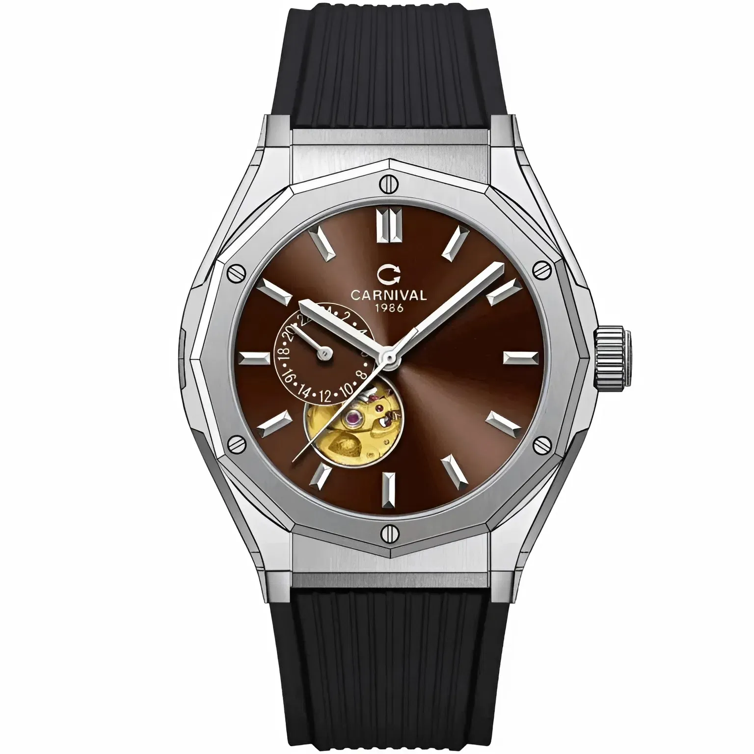 Với thiết kế lộ cơ tinh xảo, mặt số nâu độc lạ và bộ dây cao su hiện đại, Đồng Hồ Carnival Nam 8189G-VT-DCS-N thực sự là một siêu phẩm trong phân khúc. Nó không chỉ là công cụ quản lý thời gian mà còn là tuyên ngôn về gu thẩm mỹ cá tính và phong thái tự tin của phái mạnh.