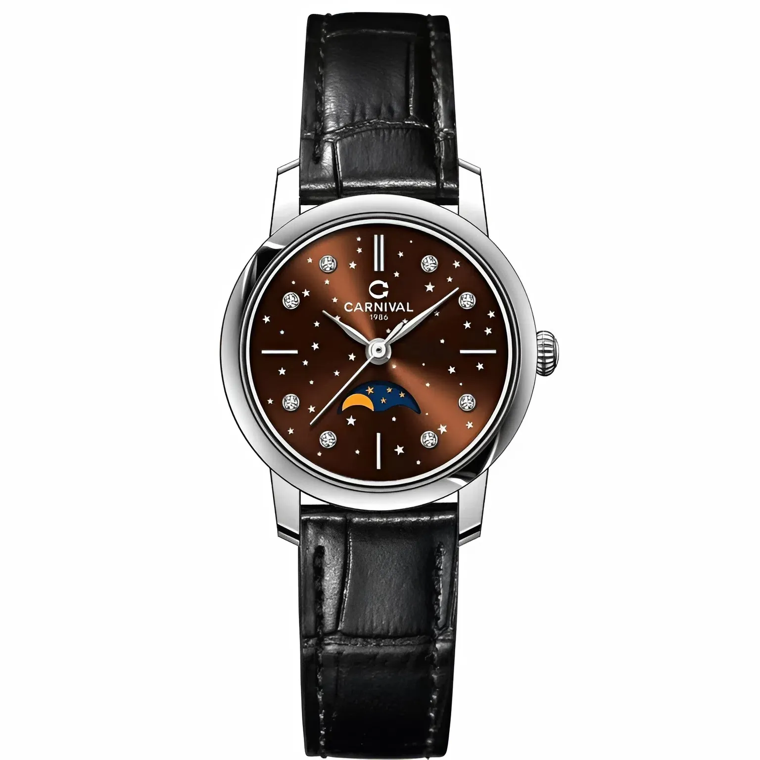 Trong thế giới đồng hồ, có những cỗ máy không chỉ dùng để đo đếm thời gian mà còn kể lại những câu chuyện về vũ trụ bao la. Đồng Hồ Carnival Nam 8193L-VT-DD-N chính là một minh chứng điển hình. Dù nằm trong danh mục tìm kiếm phổ biến là đồng hồ nam, nhưng với kích thước tinh tế và thiết kế mềm mại, đây thực chất là một "nàng thơ" dành riêng cho phái đẹp hoặc những quý ông có cổ tay nhỏ yêu thích phong cách nghệ thuật Moonphase.