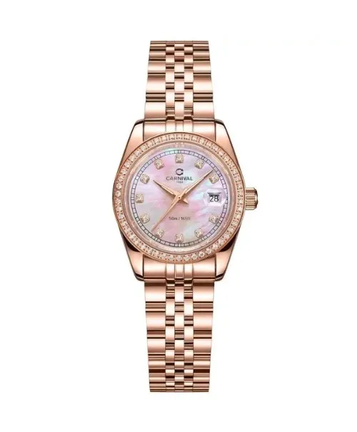 Trong hành trình tìm kiếm một món phụ kiện có thể tôn vinh trọn vẹn nét nữ tính nhưng vẫn giữ được phong thái của sự thành đạt, Đồng Hồ Carnival Nữ 8131L2-VH-HK nổi lên như một sự lựa chọn không thể hoàn hảo hơn. Không chỉ là một cỗ máy đếm giờ, sản phẩm này còn là một tuyệt tác nghệ thuật, nơi ánh sáng của đá quý hòa quyện cùng sắc hồng huyền ảo của xà cừ tự nhiên.