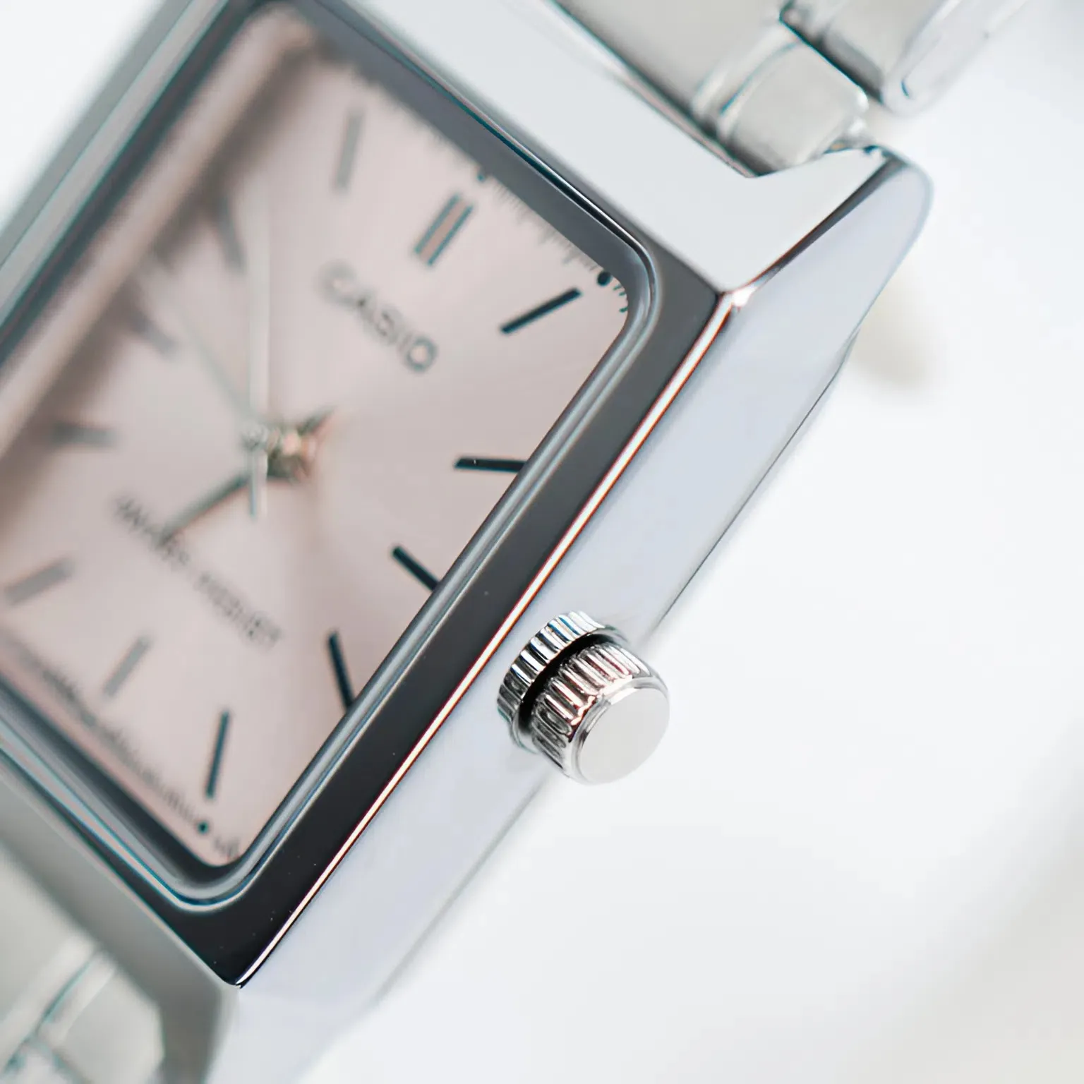 Trong dòng chảy không ngừng của thời trang, có những thiết kế dẫu trải qua bao thập kỷ vẫn giữ nguyên giá trị thẩm mỹ. Đồng Hồ Casio 22mm Nữ LTP-V007D-4EUDF chính là một "viên ngọc" như thế. Mang trên mình phong cách Tank kinh điển – vốn là biểu tượng của sự sang trọng thượng lưu, chiếc đồng hồ này đã được Casio làm mới bằng sắc hồng pastel ngọt ngào, tạo nên một món phụ kiện không thể thiếu cho những quý cô yêu thích sự thanh lịch và tinh tế.
