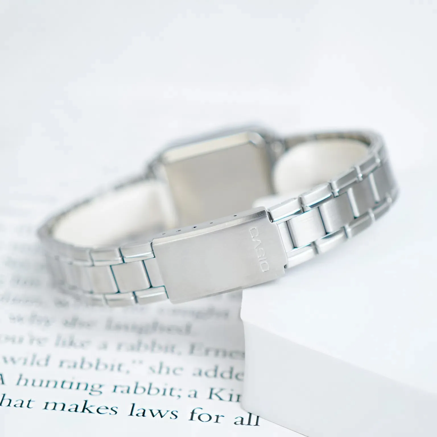 Sức hút lớn nhất của Đồng Hồ Casio 22mm Nữ LTP-V007D-4EUDF nằm ở bộ vỏ hình chữ nhật (mặt vuông) đầy cá tính. Nếu bạn đã quá quen thuộc với những mẫu mặt tròn truyền thống, thì thiết kế mặt vuông này sẽ là một làn gió mới, mang đến vẻ ngoài cá tính nhưng vẫn cực kỳ trang nhã.