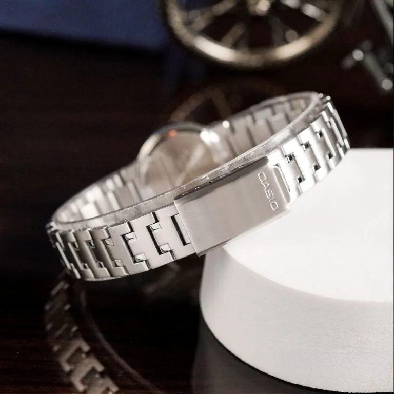 Sự bền bỉ của đồng hồ Casio 23.8mm nữ LTP-1177A-2ADF được khẳng định qua bộ vỏ và dây đeo làm từ thép không gỉ cao cấp.
