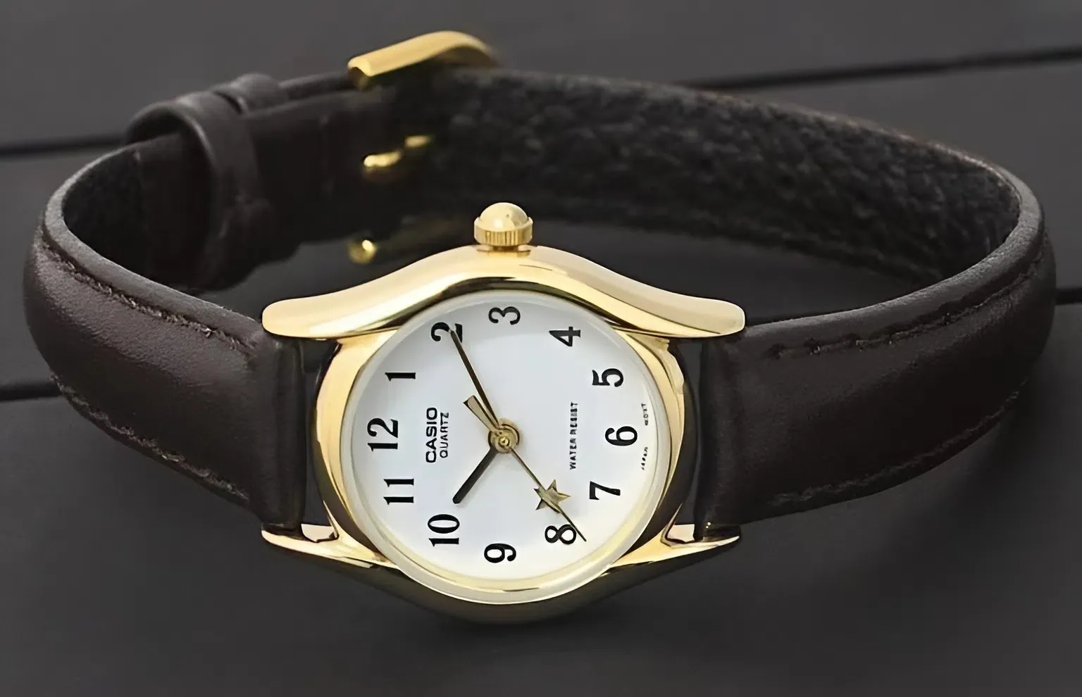 Mỗi giây trôi qua, ngôi sao nhỏ này lại "khiêu vũ" quanh mặt số, mang lại một cảm giác mơ mộng và đầy hy vọng. Trong phong thủy và quan niệm phương Đông, ngôi sao còn tượng trưng cho sự may mắn và tỏa sáng. Chi tiết nhỏ bé này chính là lý do khiến Đồng Hồ Nữ Casio LTP-1094Q-7B4RDF thường xuyên cháy hàng tại các shop đồng hồ chính hãng.