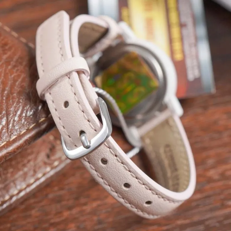 Dây da cao cấp: Phần dây da mềm mại không chỉ mang lại cảm giác thoải mái mà còn sở hữu sắc hồng pastel dịu nhẹ, không quá sặc sỡ nhưng rất trẻ trung.