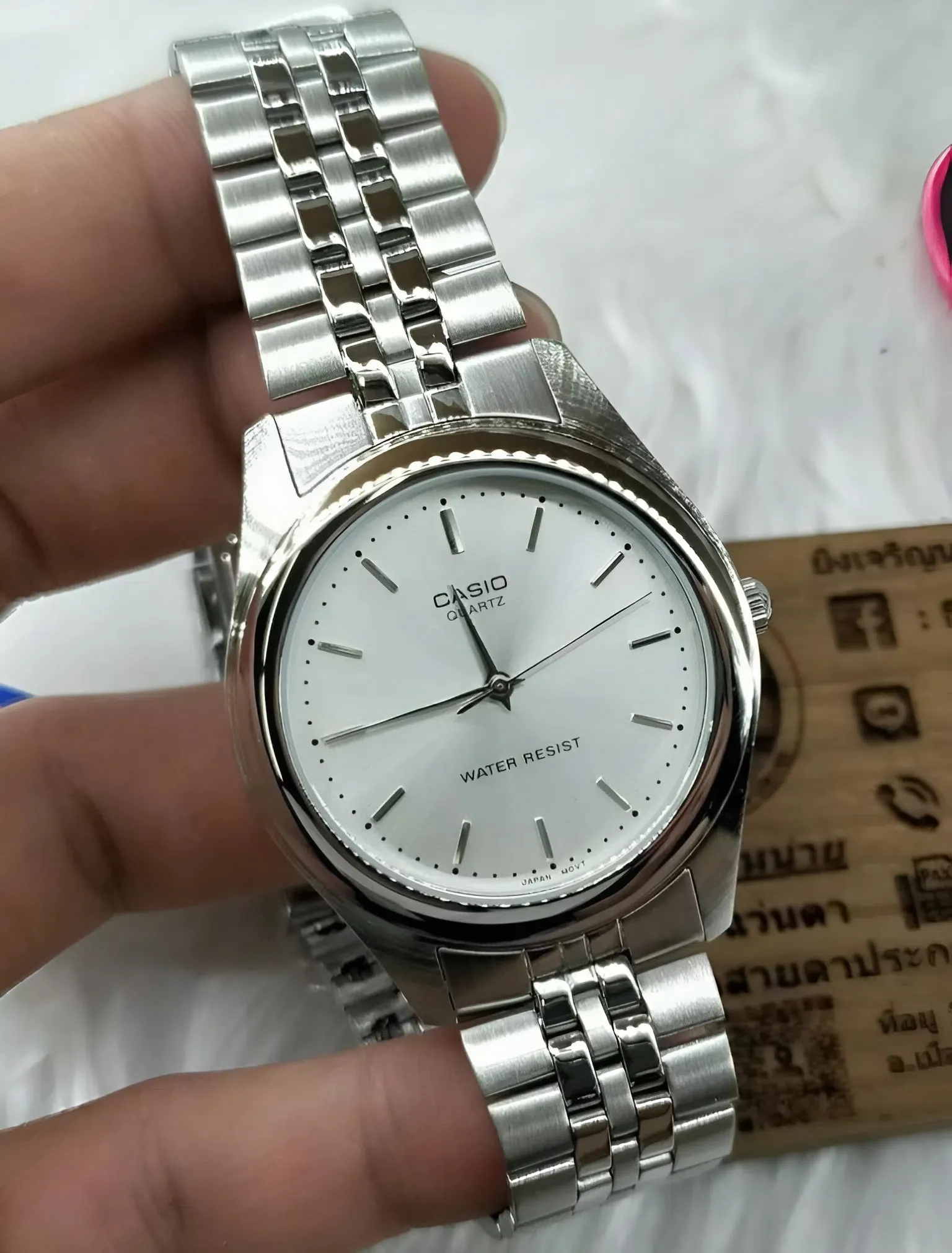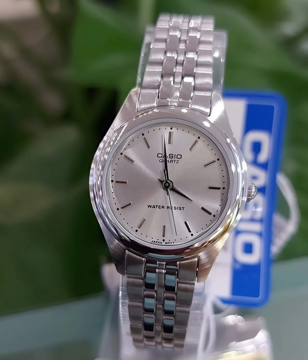 Cấu trúc mắt xích linh hoạt: Các mắt xích nhỏ được liên kết chặt chẽ nhưng vẫn đảm bảo độ mềm mại, giúp chiếc đồng hồ nữ Casio dây kim loại ôm sát theo đường cong của cổ tay mà không để lại vết hằn.