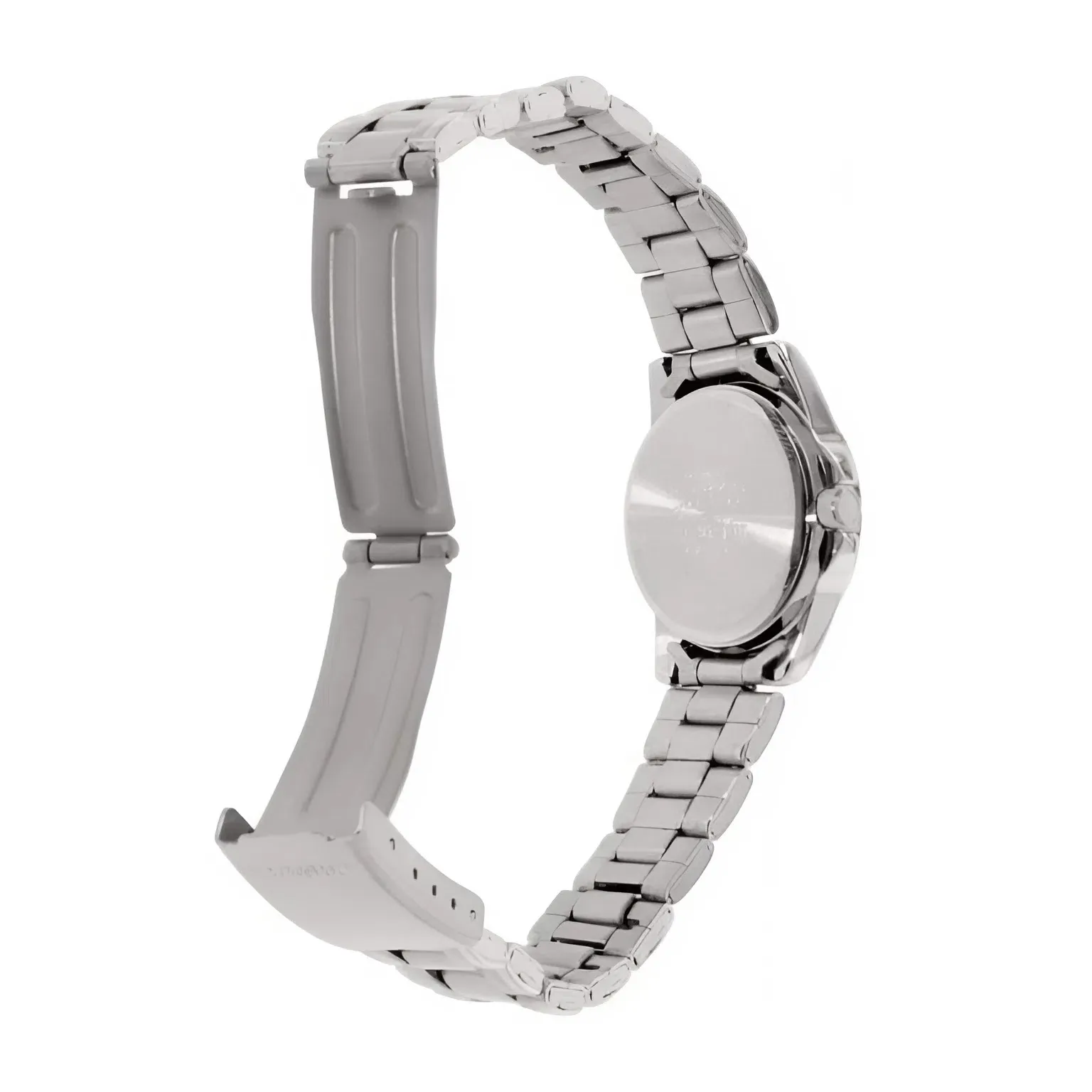 Điểm gây ấn tượng đầu tiên của Đồng Hồ Casio 27mm Nữ LTP-1215A-7ADF chính là sự tối giản trong màu sắc. Với tông màu bạc (silver) chủ đạo xuyên suốt từ dây đeo đến mặt số, sản phẩm toát lên vẻ lạnh lùng nhưng cực kỳ sang trọng.