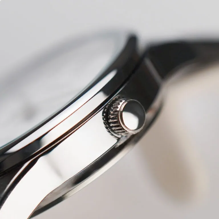 Vỏ thép sáng bóng: Lớp vỏ bằng thép không gỉ được đánh bóng tỉ mỉ, phản chiếu ánh sáng dịu nhẹ, bảo vệ bộ máy bên trong khỏi những tác động của môi trường.