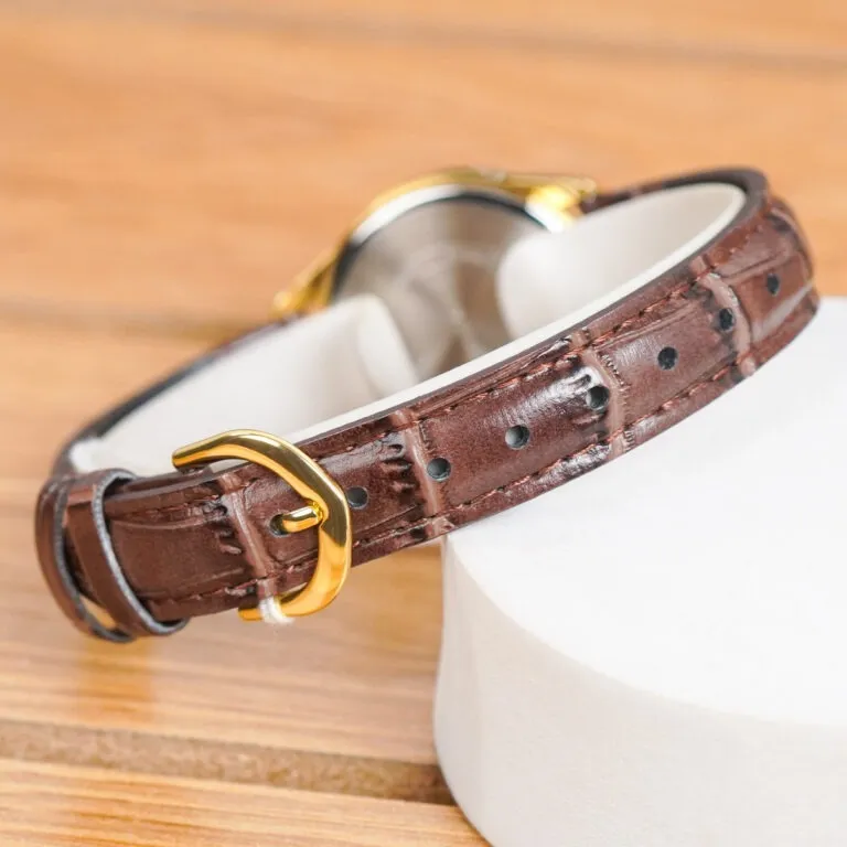 Dây da chính hãng: Dây da màu nâu sẫm dập vân cá sấu không chỉ mang lại sự êm ái khi đeo mà còn tạo nên phong cách chỉn chu, chuyên nghiệp.