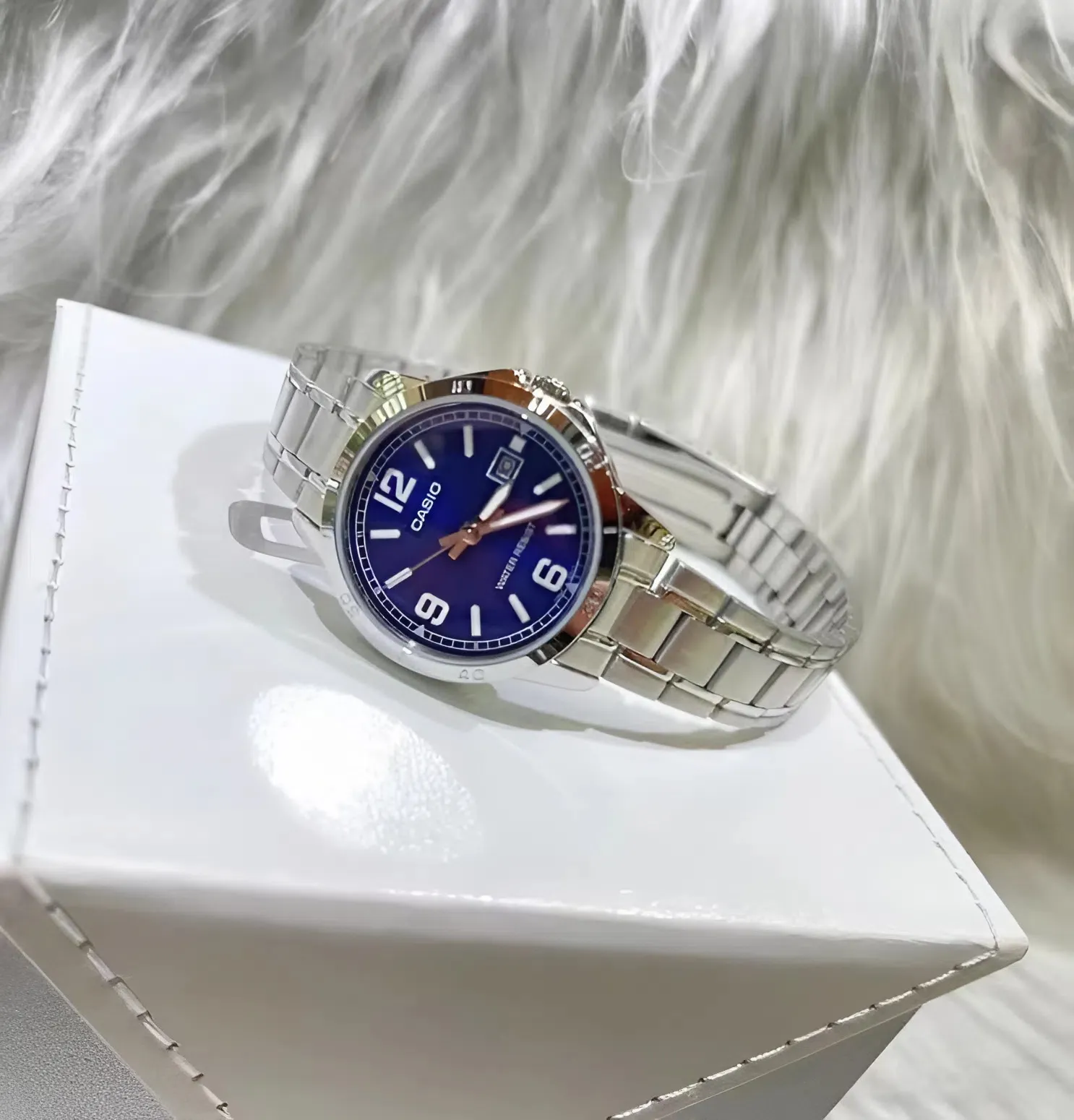 Điểm nhấn đắt giá nhất của Đồng Hồ Casio 30.2mm Nữ LTP-V004D-2BUDF chính là mặt số màu xanh dương (Blue Dial) với họa tiết vân tia đồng tâm tinh tế. Sắc xanh này không chỉ mang lại cảm giác trẻ trung, hiện đại mà còn cực kỳ tôn da, giúp đôi tay người đeo trở nên nổi bật và thanh thoát hơn.