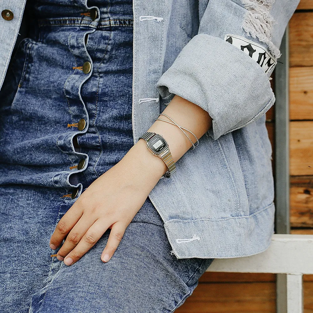 Khác với những mẫu đồng hồ điện tử nam tính và hầm hố, chiếc LA670WD-1DF nằm gọn gàng trên tay bạn như một chiếc lắc tay bạc tinh xảo. Độ mỏng ấn tượng chỉ 7.3mm giúp bạn dễ dàng phối cùng các mẫu áo sơ mi công sở hay váy dài mà không sợ bị cấn tay hay mất thẩm mỹ.