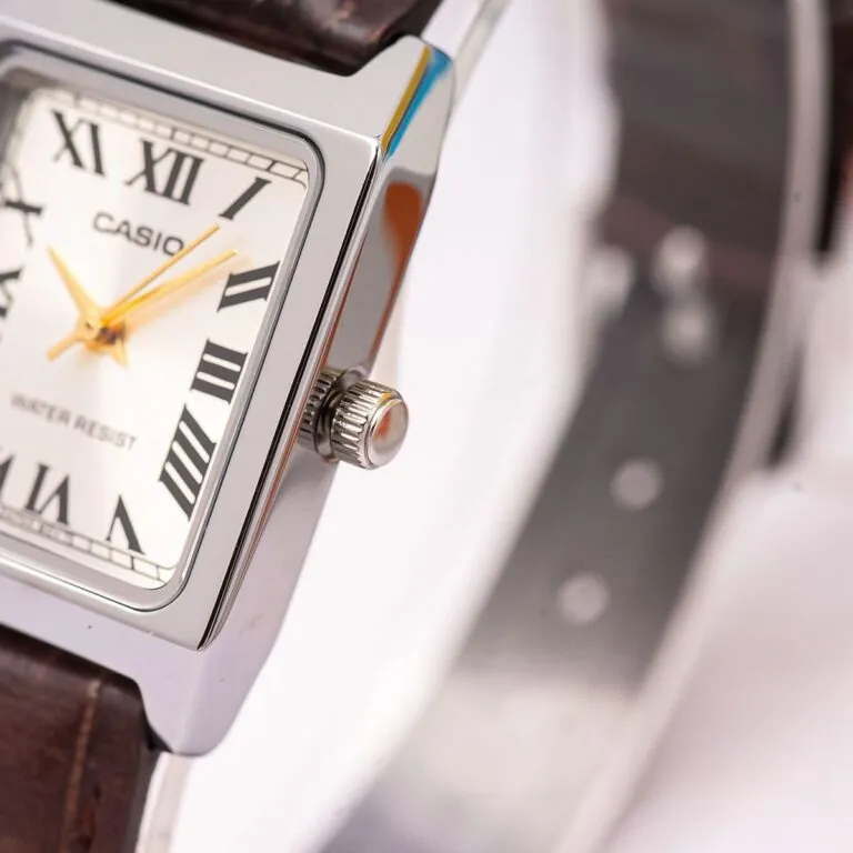Hiệu ứng thị giác: Khác với mặt tròn truyền thống, mặt vuông của Đồng Hồ Casio 31 x 22 mm Nữ LTP-V007L-9BUDF giúp cổ tay người đeo trông thon gọn và có điểm nhấn hơn, đặc biệt phù hợp với những bộ trang phục công sở cần sự chỉn chu.