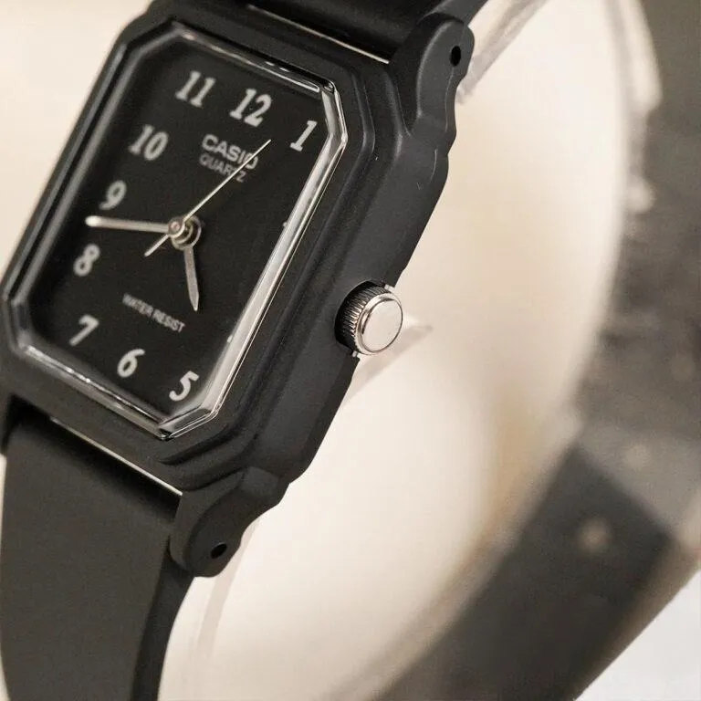 Điểm nhấn khác biệt nhất của Đồng Hồ Casio 31.7 x 22.5 mm Nữ LQ-142-1BDF chính là phần mặt số hình chữ nhật được bo góc nhẹ nhàng. Thay vì những mặt tròn truyền thống, thiết kế mặt vuông mang lại nét cá tính, pha chút hoài cổ (Vintage) cực kỳ thu hút.