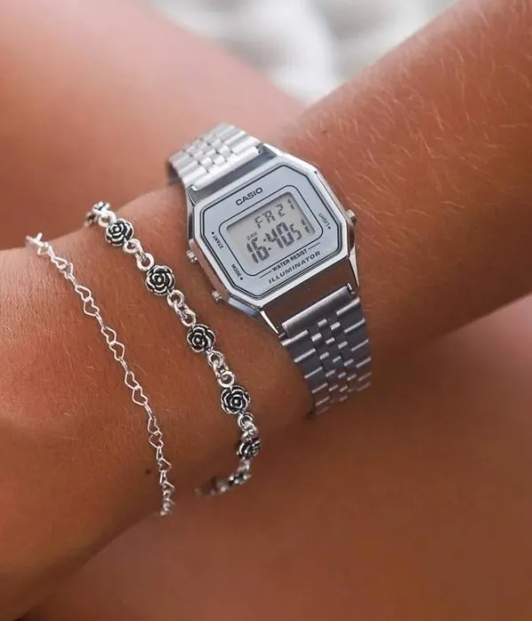 Màu bạc (silver) của dây thép không gỉ kết hợp cùng mặt số điện tử hiển thị rõ nét tạo nên một tổng thể hài hòa. Đây không chỉ là một thiết bị xem giờ, mà là một món trang sức giúp bạn kết nối giữa quá khứ lừng lẫy và hiện đại năng động.