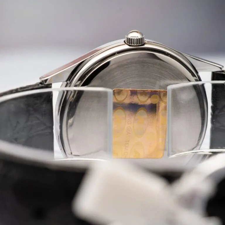 Bộ kim thanh mảnh cùng vòng chia phút tỉ mỉ bao quanh mặt số tạo nên một tổng thể hài hòa. Sự kết hợp giữa trắng và đen trên mặt số không chỉ mang lại nét hoài cổ mà còn giúp chiếc đồng hồ này trở nên cực kỳ dễ phối đồ, phù hợp với mọi môi trường từ công sở đến các buổi tiệc sang trọng.