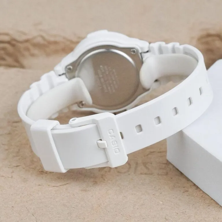 Bạn đừng nghĩ rằng một chiếc đồng hồ nhựa màu trắng chỉ dành cho học sinh. Đồng Hồ Casio 34.2 mm Nữ LRW-200H-7BVDF có khả năng thích nghi cực tốt với nhiều phong cách: