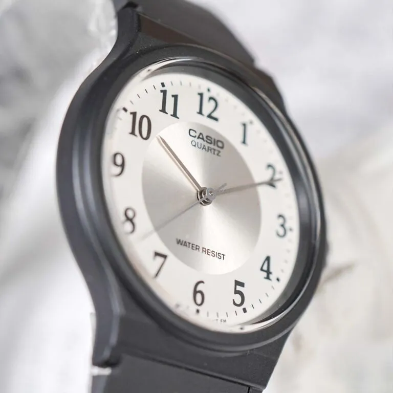 Mặt số trắng bạc thanh lịch: Thay vì mặt trắng tinh thông thường, Casio đã trang bị cho mẫu MQ-24-7B3LDF một mặt số màu bạc nhẹ với hiệu ứng chải tia tinh tế. Điều này tạo nên chiều sâu và vẻ sang trọng âm thầm cho sản phẩm.