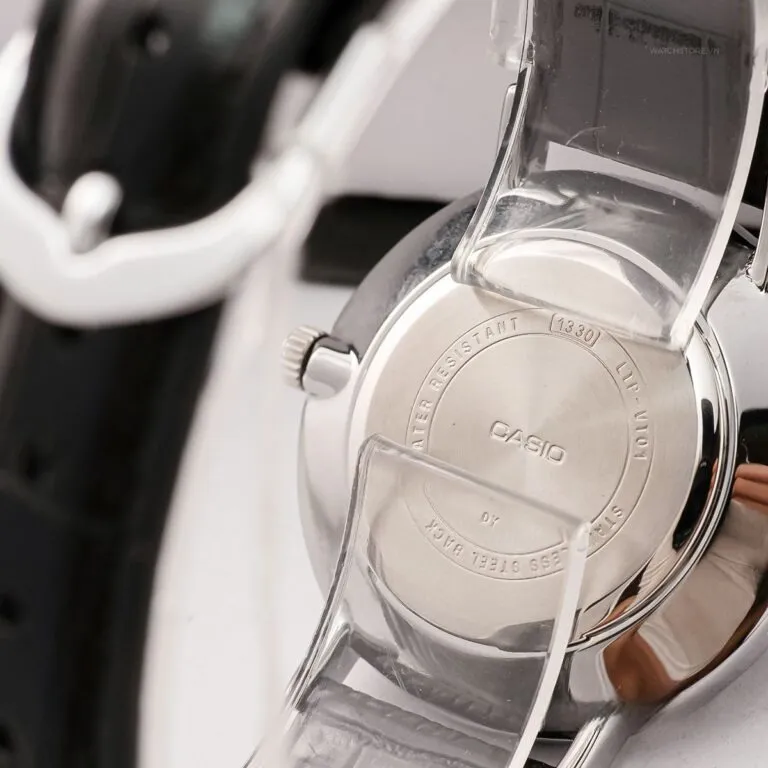 Khác với những mẫu dây kim loại có phần cứng nhắc, Đồng Hồ Casio 34mm Nữ LTP-VT01L-1BUDF được trang bị bộ dây da đen chính hãng với các đường vân dập tinh tế. Chất liệu da mềm mại không chỉ mang lại sự êm ái cho làn da mà còn tôn lên vẻ thanh lịch đặc trưng của phái đẹp.