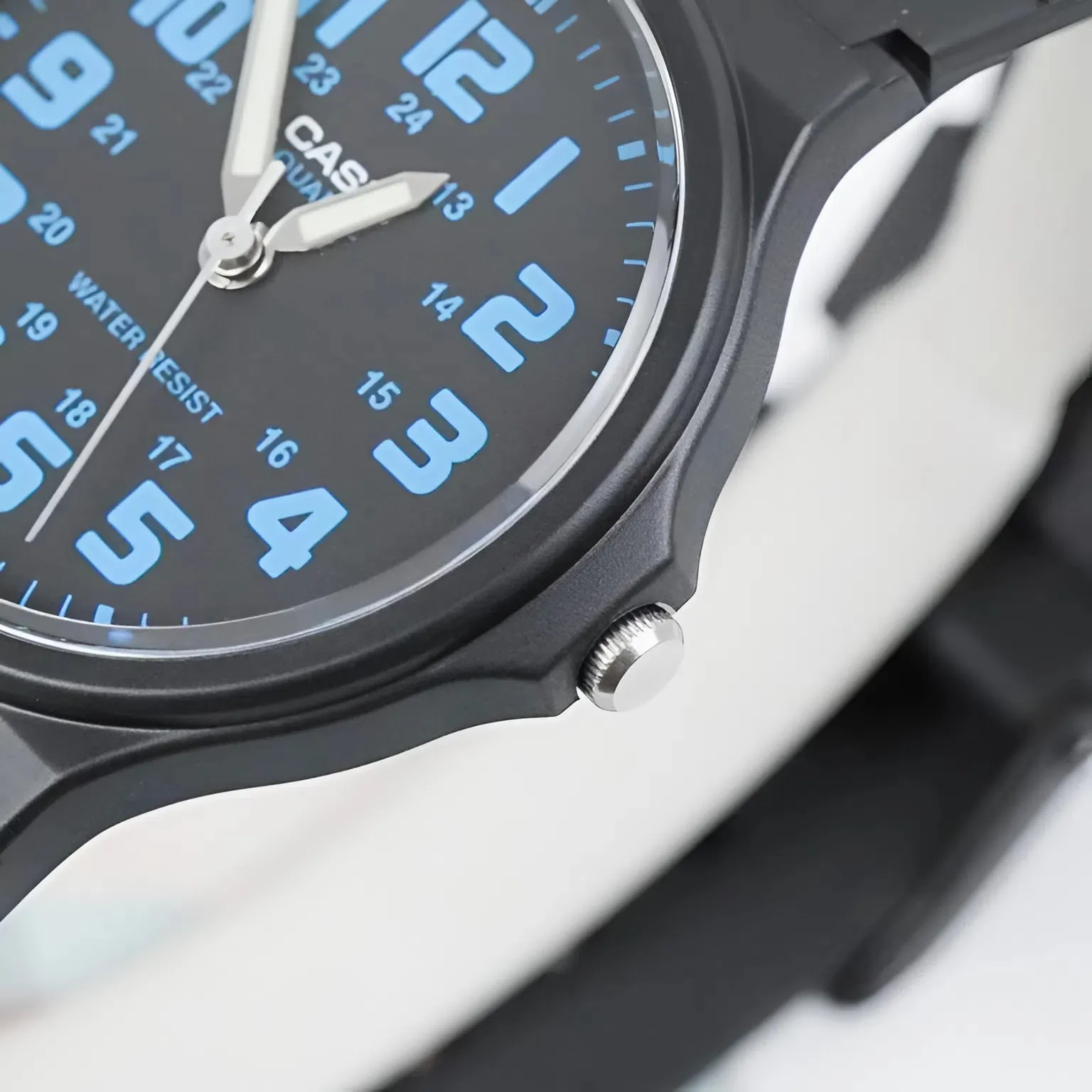 Điểm thu hút nhất của chiếc Đồng Hồ Casio 35mm Nam MQ-71-2BDF chính là sự phối màu cực kỳ thông minh. Toàn bộ vỏ và dây đeo được bao phủ bởi màu đen huyền bí từ chất liệu nhựa Resin cao cấp. Trên nền đen đó, các chi tiết số học trò và bộ kim được tô điểm bằng màu xanh dương (Blue) bắt mắt.