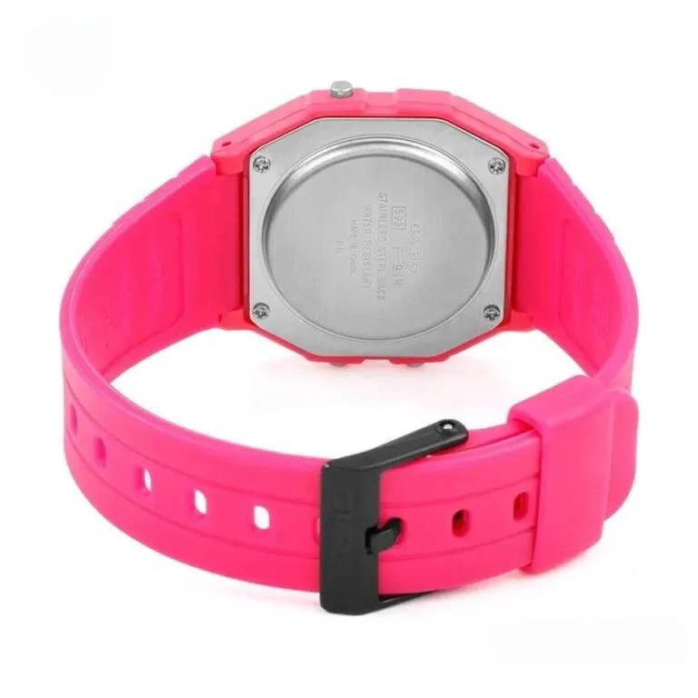 Điểm thu hút ánh nhìn đầu tiên của Đồng Hồ Casio 35mm Nữ F-91WC-4AEF chính là bảng màu cực kỳ nổi bật. Khác với những tông màu trầm mặc dành cho nam giới, phiên bản này khoác lên mình lớp áo màu hồng cánh sen rực rỡ từ vỏ máy cho đến dây đeo.