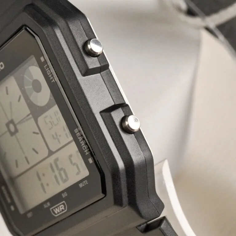 Đặc biệt, tuổi thọ pin của mẫu này lên đến 3 năm, một con số ấn tượng cho một chiếc đồng hồ điện tử có màn hình hiển thị nhiều chi tiết đồ họa. Mặt kính nhựa Resin bền bỉ, dễ dàng đánh bóng nếu chẳng may có vết trầy xước nhẹ trong quá trình sử dụng.
