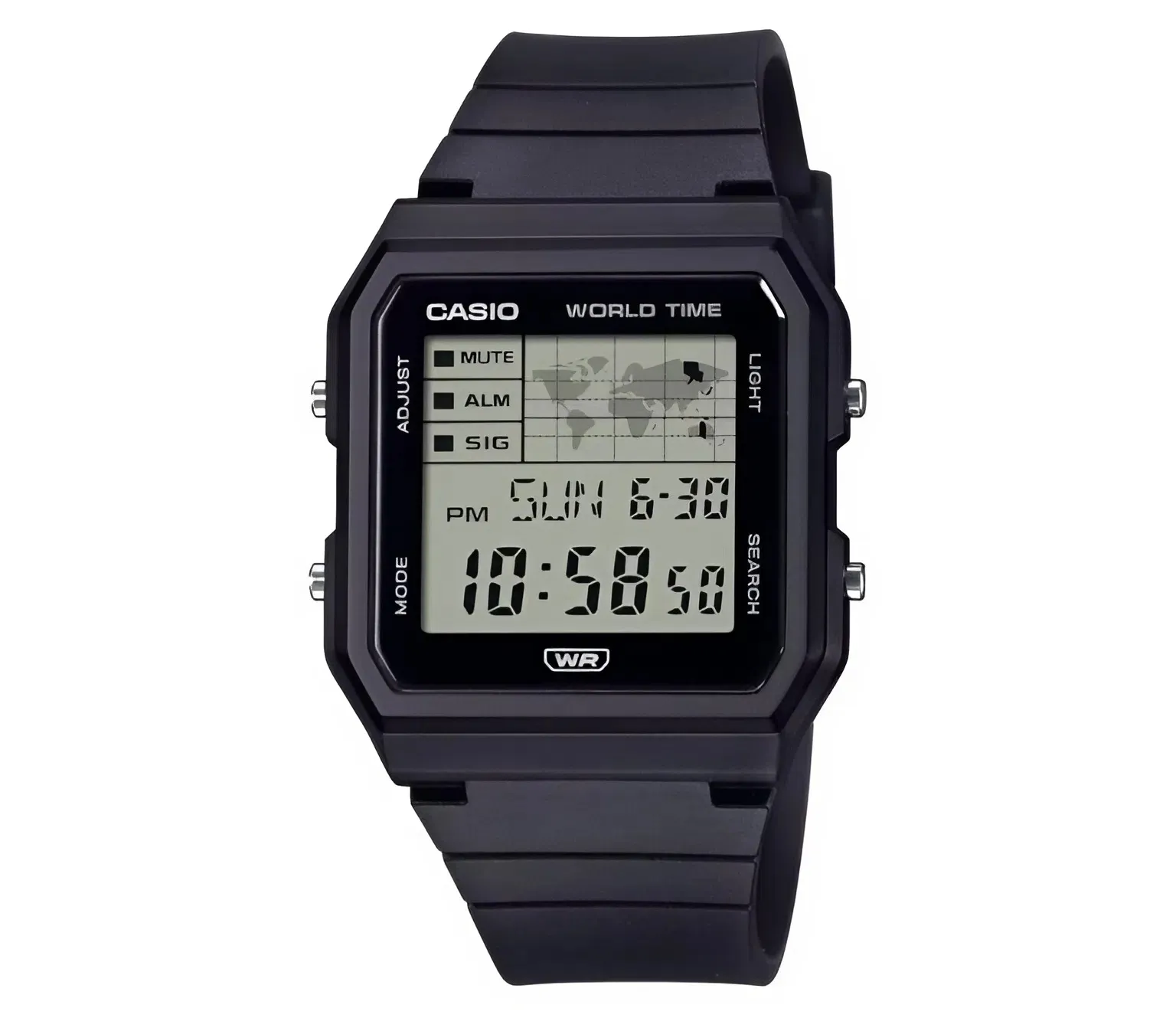 Điểm gây ấn tượng mạnh mẽ nhất của Đồng Hồ Casio 37.8mm x 33.7mm Nam LF-30W-1ADF ngay từ cái nhìn đầu tiên chính là màn hình hiển thị bản đồ thế giới ở góc trên. Đây không chỉ là một chi tiết trang trí; nó phản ánh tính năng Giờ thế giới mạnh mẽ của máy. Việc đưa hình ảnh bản đồ lên mặt đồng hồ điện tử mang lại cảm giác của một "nhà thám hiểm" hiện đại, giúp bạn luôn kết nối với mọi múi giờ toàn cầu ngay trên cổ tay mình.