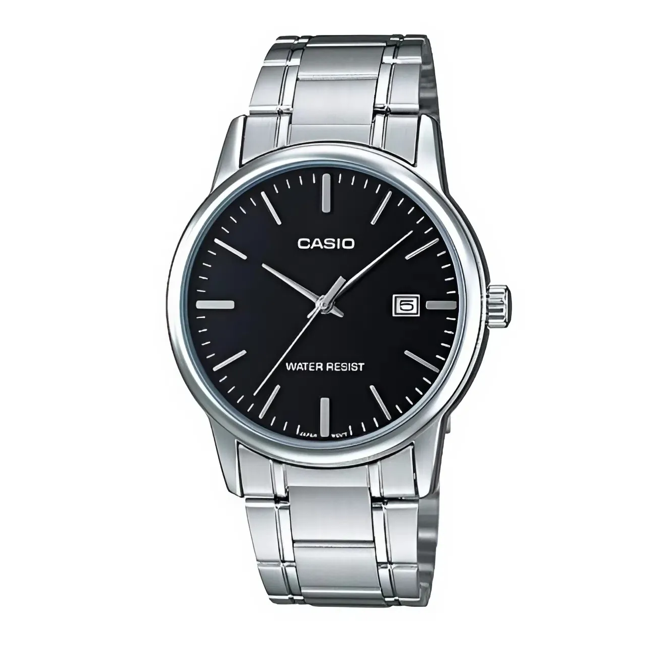 Trên nền đen ấy, các cọc số dạng vạch bạc và bộ kim được gọt giũa sắc sảo trở nên nổi bật hơn bao giờ hết. Sự tương phản này không chỉ giúp Đồng Hồ Casio 37mm Nam MTP-V002D-1AUDF trông cao cấp hơn tầm giá thực tế mà còn giúp bạn dễ dàng theo dõi thời gian ngay cả trong môi trường ánh sáng phức tạp.