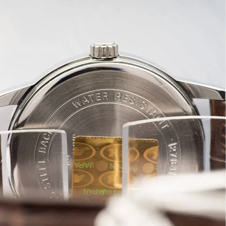 Vỏ thép không gỉ: Phần vỏ được chế tác từ thép tiêu chuẩn, mạ bạc sáng bóng bằng công nghệ hiện đại, giúp bảo vệ bộ máy bên trong khỏi những tác động ngoại lực và giữ cho đồng hồ luôn trông như mới.