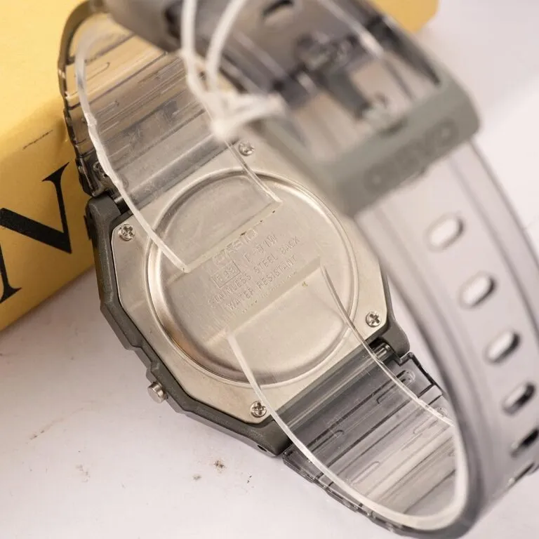 Điểm khiến chiếc đồng hồ này trở nên khác biệt hoàn toàn chính là chất liệu nhựa trong suốt màu xám khói (Grey Skeleton). Không quá rực rỡ nhưng lại cực kỳ thu hút, gam màu này mang đến vẻ ngoài bí ẩn, thanh lịch và vô cùng hiện đại. Khi ánh sáng xuyên qua lớp vỏ và dây đeo, Casio F-91WS-8HDF tạo nên một hiệu ứng thị giác độc đáo, giúp cổ tay bạn trở nên nổi bật dù phối với bất kỳ trang phục nào.
