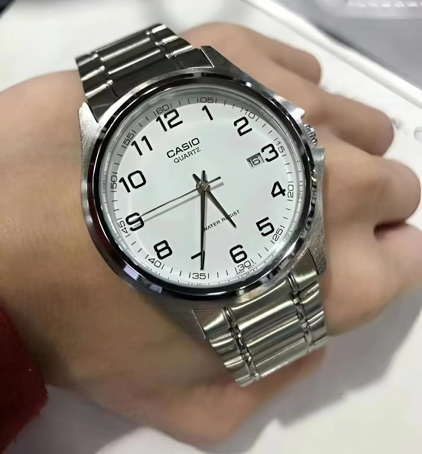 Việc lựa chọn kích thước mặt đồng hồ thường gây đau đầu cho các quý ông có cổ tay vừa hoặc nhỏ. Với đường kính mặt đồng hồ Casio 38.5mm nam MTP-1183A-7BDF, nhà sản xuất Nhật Bản đã giải quyết triệt để bài toán này. Kích thước 38.5mm được coi là "con số vàng", giúp chiếc đồng hồ nằm gọn gàng và ôm sát, không gây cảm giác quá to hay lọt thỏm.