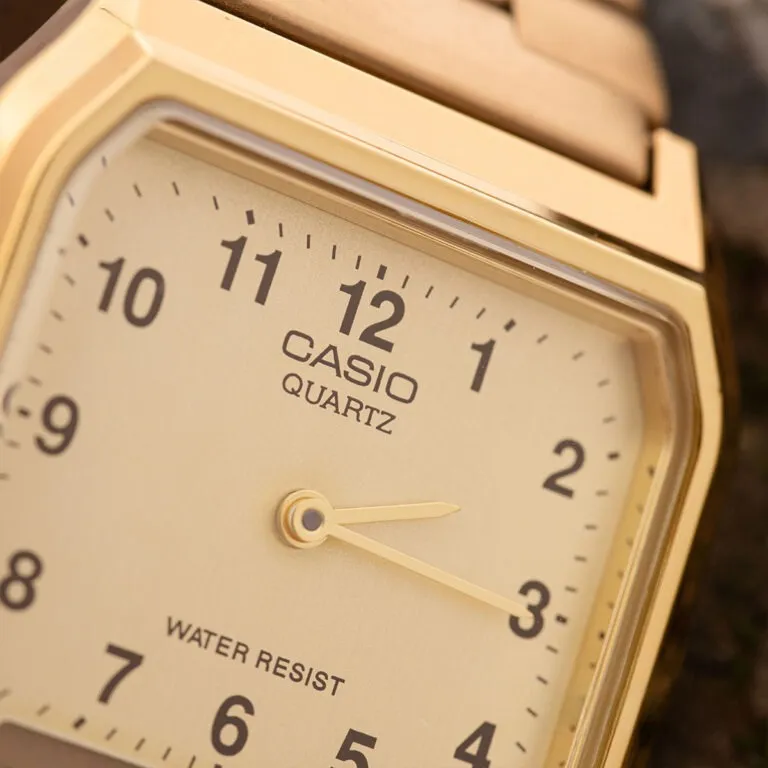 Trong thế giới đồng hồ đầy biến động với những công nghệ hào nhoáng, dòng Casio Vintage vẫn giữ vững vị thế là một "tượng đài" bất tử trong lòng giới mộ điệu. Đặc biệt, Đồng Hồ Casio 38.8 x 29.8 mm Nam AQ-230GA-9BMQ không chỉ đơn thuần là một công cụ xem giờ, mà còn là bản giao hưởng giữa nét hoài cổ của thập niên trước và hơi thở đa năng của thời đại số. Với sắc vàng vương giả bao phủ toàn bộ thiết kế, mẫu đồng hồ này chính là chìa khóa để khẳng định gu thẩm mỹ tinh tế và bản lĩnh của người sở hữu.