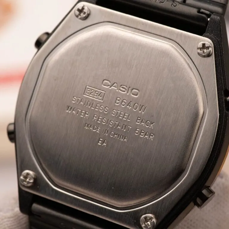 Để nâng tầm cho một sản phẩm điện tử, Casio đã trang bị cho Đồng Hồ Casio 38.9 x 35 mm Nam B640WBG-1BDF bộ dây đeo bằng thép không gỉ. Lớp mạ Ion đen (Black IP) không chỉ mang lại vẻ ngoài đồng nhất mà còn gia tăng khả năng chống trầy xước và bền màu theo thời gian.