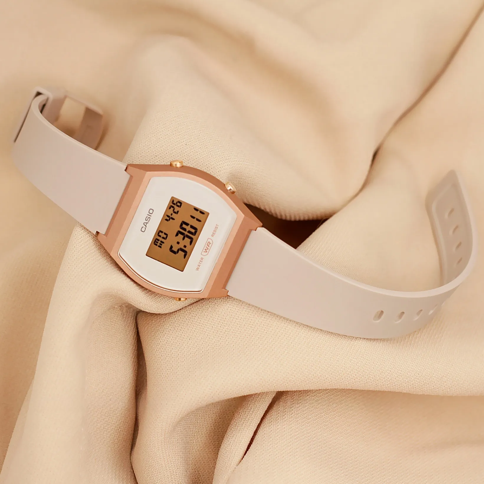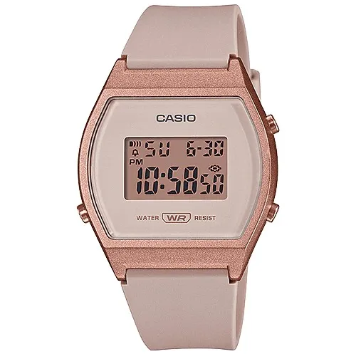 Điểm làm nên sự khác biệt lớn nhất của Đồng Hồ Casio 38.9 x 35 mm Nữ LW-204-4ADF chính là phối màu. Không phải sắc hồng rực rỡ hay sến sẩm, Casio đã chọn tông hồng tro (dusty pink) kết hợp với phần vỏ mạ màu vàng hồng sang trọng.