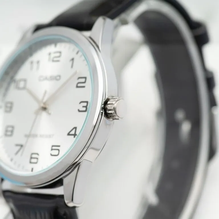 Mặt số của Đồng Hồ Casio 38mm Nam MTP-V001L-7BUDF được thiết kế theo phong cách Analog truyền thống. Nền mặt trắng bạc (Silver) kết hợp cùng bộ số Arab màu đen rõ ràng, tạo nên một độ tương phản hoàn hảo.