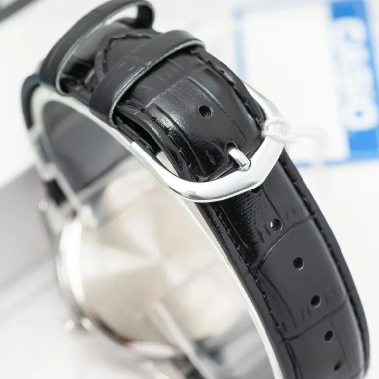 Dây đeo: Sử dụng chất liệu da cao cấp dập vân cá sấu màu đen. Lớp dây này không chỉ mang lại cảm giác êm ái khi đeo mà còn tăng thêm phần quyền lực, nam tính cho chủ nhân.