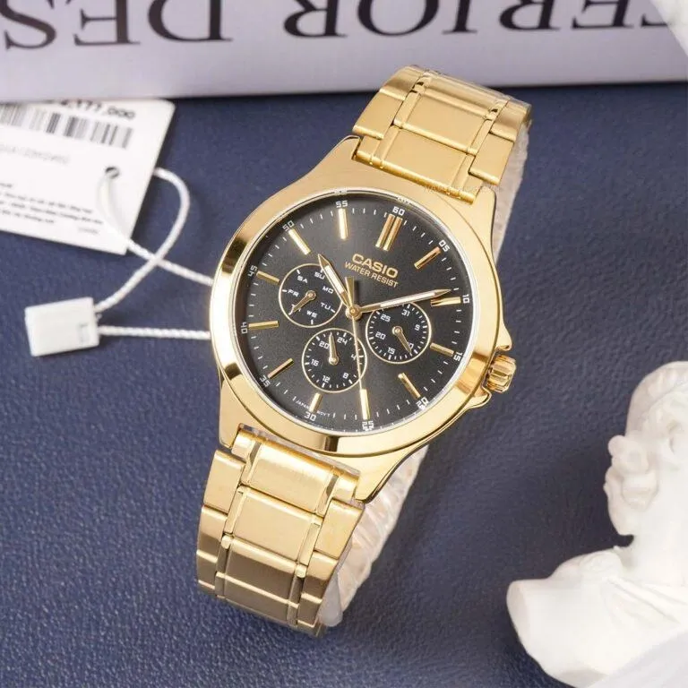 Trong phân khúc đồng hồ tầm trung, hiếm có mẫu thiết kế nào lại sở hữu sức hút mãnh liệt như chiếc Đồng Hồ Casio 39.4mm Nam MTP-V300G-1AUDF. Đây không đơn thuần chỉ là một cỗ máy đếm giờ, mà còn là một món trang sức cao cấp giúp nâng tầm diện mạo cho quý ông. Với sự kết hợp hoàn mỹ giữa sắc vàng kim vương giả và mặt số đen huyền bí, sản phẩm này đã nhanh chóng trở thành một trong những cái tên được săn đón nhất tại hệ thống Watch25x.