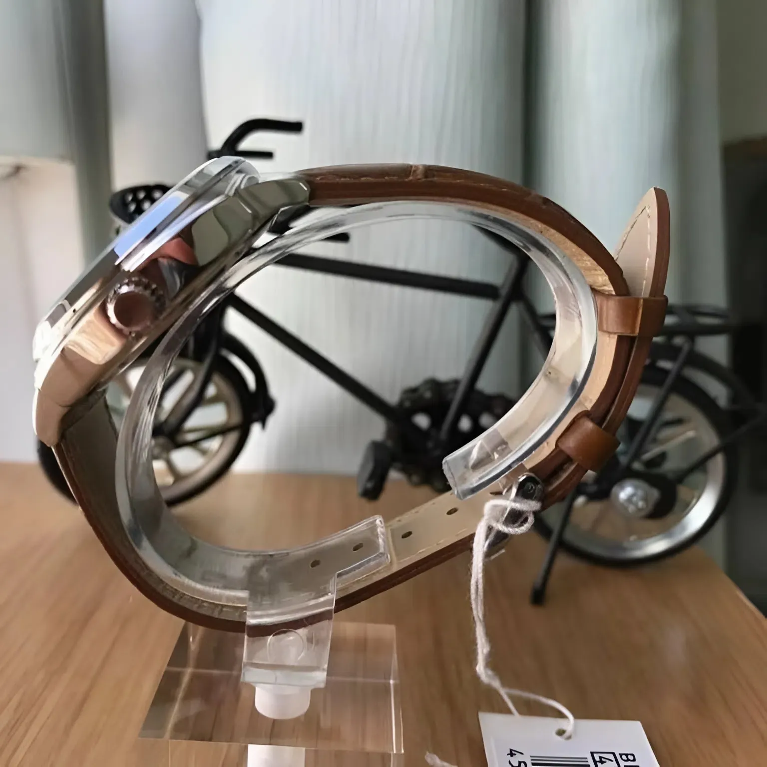 Kích thước này đảm bảo tính "vừa đủ": đủ lớn để gây ấn tượng nhưng cũng đủ nhỏ gọn để mang lại sự thoải mái tối đa khi vận động. Kết hợp cùng bộ dây da nâu vân cá sấu cao cấp, chiếc đồng hồ ôm sát lấy cổ tay, tạo cảm giác nhẹ nhàng nhưng vô cùng chắc chắn.