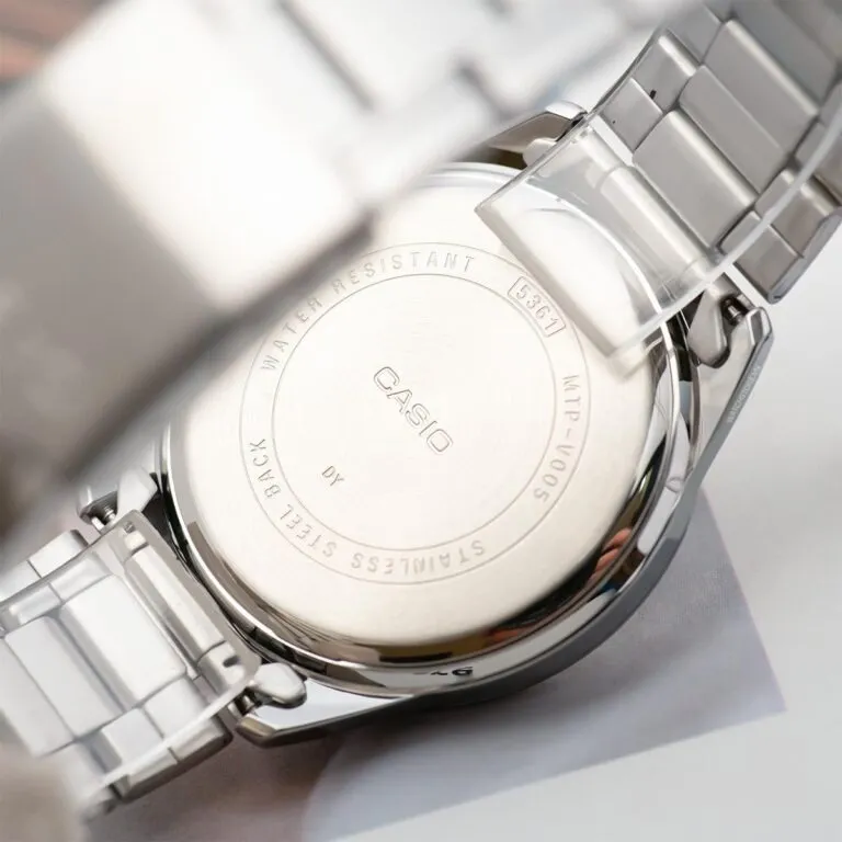 Chất liệu dây đeo là một điểm cộng lớn cho Đồng Hồ Casio 40mm Nam MTP-V005G-7BUDF. Được chế tác từ thép không gỉ cao cấp, dây đeo của máy không chỉ chống lại sự ăn mòn từ mồ hôi hay môi trường mà còn rất dễ dàng vệ sinh. Các mắt xích được nối với nhau chắc chắn, khóa bấm ba gập linh hoạt giúp bạn thao tác đeo và tháo đồng hồ chỉ trong một giây. So với dây da, dây kim loại mang lại vẻ ngoài mạnh mẽ và nam tính hơn hẳn.