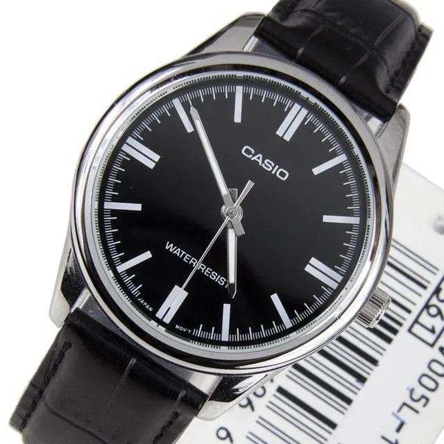 Dây da chính là linh hồn của mẫu thiết kế này. Đồng Hồ Casio 40mm Nam MTP-V005L-1AUDF sở hữu bộ dây da đen cao cấp được dập vân cá sấu tinh tế. Chất liệu da mềm mại không chỉ mang lại sự thoải mái khi đeo mà còn tăng thêm phần sang trọng cho tổng thể sản phẩm.
