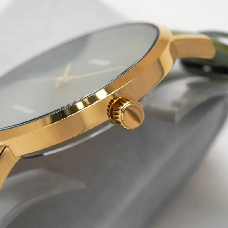 Mặt kính khoáng: Khả năng chịu lực và chống va đập tốt, bảo vệ vẻ đẹp của mặt số xanh lá bền vững theo năm tháng.
