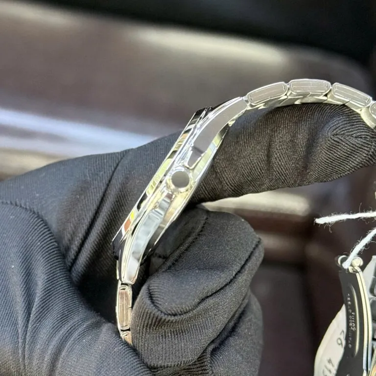 Với thông số đường kính 41.3mm, mẫu đồng hồ này được đo đạc kỹ lưỡng để phù hợp với đại đa số cổ tay nam giới Á Đông. Kích thước này đủ để thể hiện sự nam tính, vững chãi nhưng không quá cồng kềnh, giúp bạn dễ dàng kết hợp cùng áo sơ mi công sở hay những bộ Suit chỉnh chu.