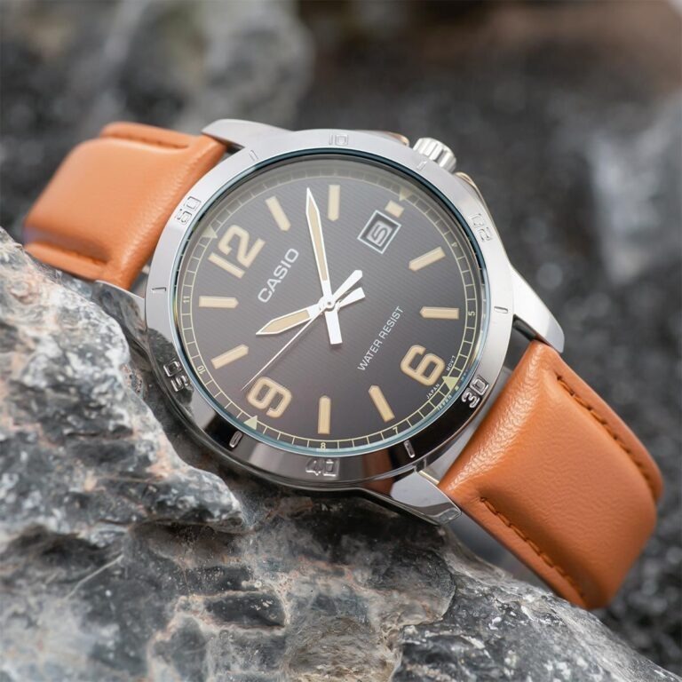 Ngay khi chạm mắt, Đồng Hồ Casio 41.5mm Nam MTP-V004L-1B2UDF gây ấn tượng mạnh bởi sự tương phản đầy thú vị. Nếu sắc đen của mặt số đại diện cho sự quyền lực, bí ẩn thì tông nâu sáng của dây da lại mang đến hơi thở trẻ trung, phóng khoáng. Với kích thước mặt số 41.5mm, đây là thông số "vàng" giúp tôn vinh cổ tay của đàn ông Việt, tạo nên sự vững chãi nhưng không hề thô kệch.
