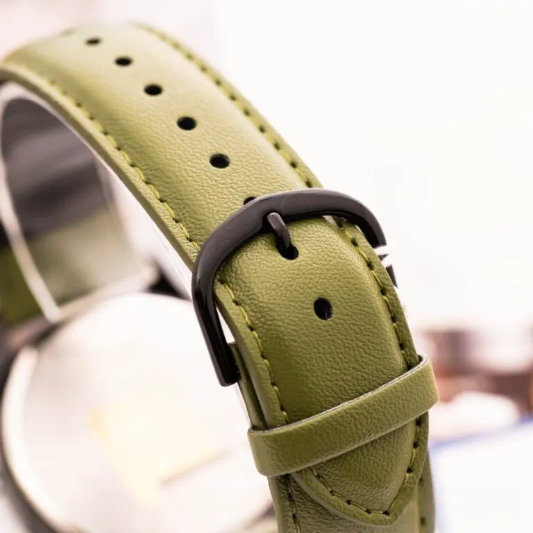 Chất liệu da cao cấp được xử lý mềm mại, đi kèm với các đường chỉ khâu cùng tông màu xanh rêu tạo nên sự đồng nhất hoàn hảo. Khi đeo trên tay, sợi dây này mang lại cảm giác êm ái, nhẹ nhàng và đặc biệt là cực kỳ tôn da, bất kể bạn sở hữu tông da sáng hay trầm.
