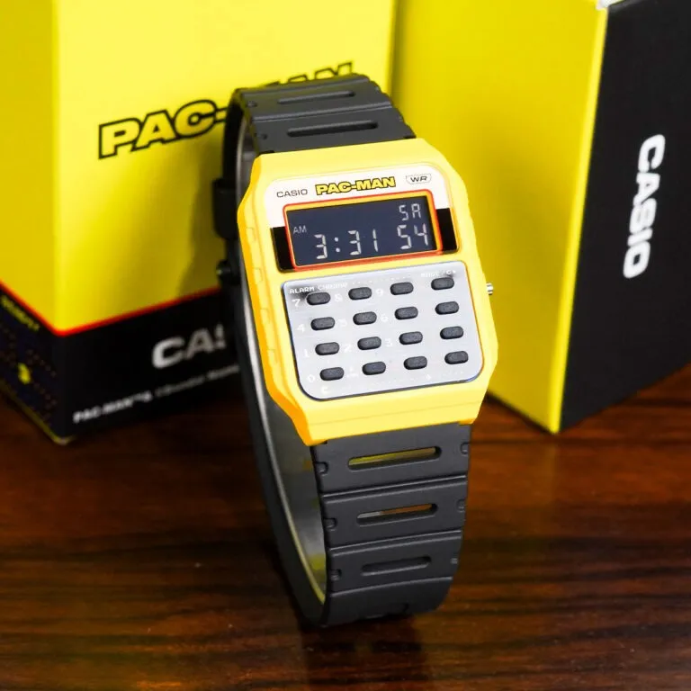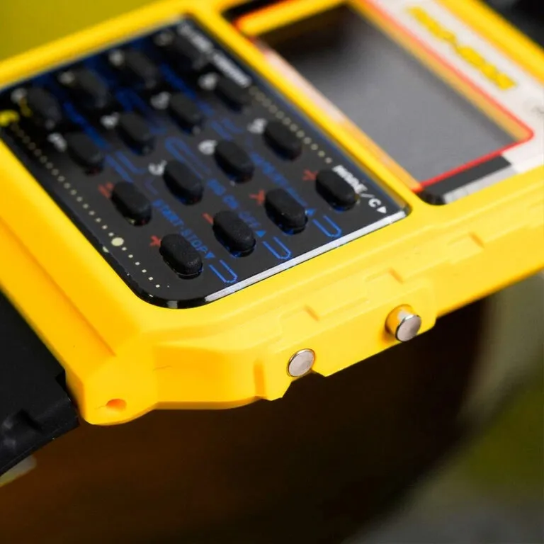 Các chi tiết trên bàn phím và mặt kính được tinh chỉnh để gợi nhớ đến mê cung quen thuộc trong game. Sự kết hợp giữa nền nhựa đen bền bỉ và các điểm nhấn màu sắc tươi sáng khiến chiếc đồng hồ trở nên cực kỳ nổi bật trên cổ tay, đặc biệt là với những ai yêu thích phong cách thời trang Retro hay Geek-chic.