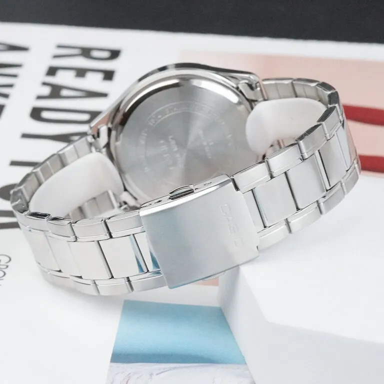 Dây đeo của Đồng Hồ Casio 43.5 mm Nam MTP-1374D-1A3VDF sử dụng chất liệu thép không gỉ với cấu tạo các mắt xích chắc chắn. Ưu điểm của dây kim loại là khả năng chống ăn mòn bởi mồ hôi, không gây cảm giác bí bách hay mùi khó chịu như các loại dây da thông thường. Khóa bấm một chạm tiện lợi giúp việc đeo và tháo đồng hồ trở nên nhanh chóng, đồng thời đảm bảo an toàn tuyệt đối, tránh tình trạng rơi rớt khi vận động mạnh.