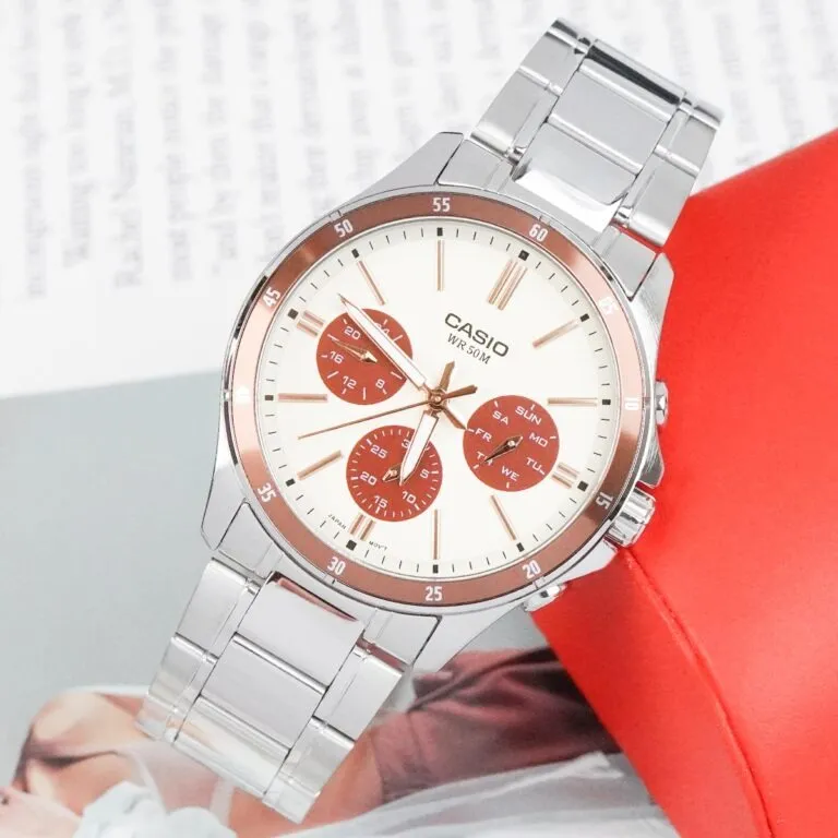 Chính nhờ sự phối màu tinh tế giữa trắng, bạc và đồng, chiếc Đồng Hồ Casio 43.5 mm Nam MTP-1374D-5A2VDF có khả năng biến hóa linh hoạt với nhiều phong cách thời trang: