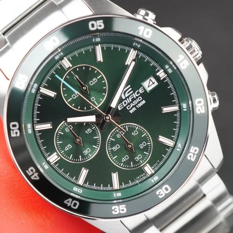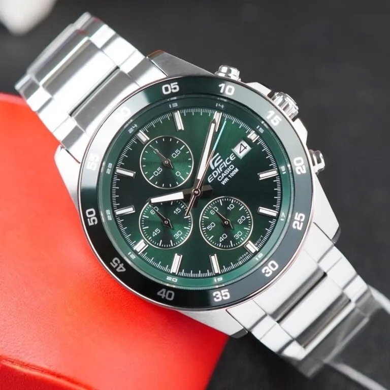 Trong phân khúc đồng hồ thể thao tầm trung, dòng Edifice của Casio luôn biết cách làm mới mình để không lỗi thời. Sự xuất hiện của mẫu Đồng Hồ Casio 43.8mm Nam EFR-526D-3AVUDF đã tạo nên một làn gió mới nhờ sự kết hợp táo bạo giữa nét cổ điển của thép không gỉ và sắc thái hiện đại của mặt số xanh lục bảo (Emerald Green). Đây không chỉ là một công cụ xem giờ, mà là một tuyên ngôn về phong cách dành cho những người đàn ông bản lĩnh.
