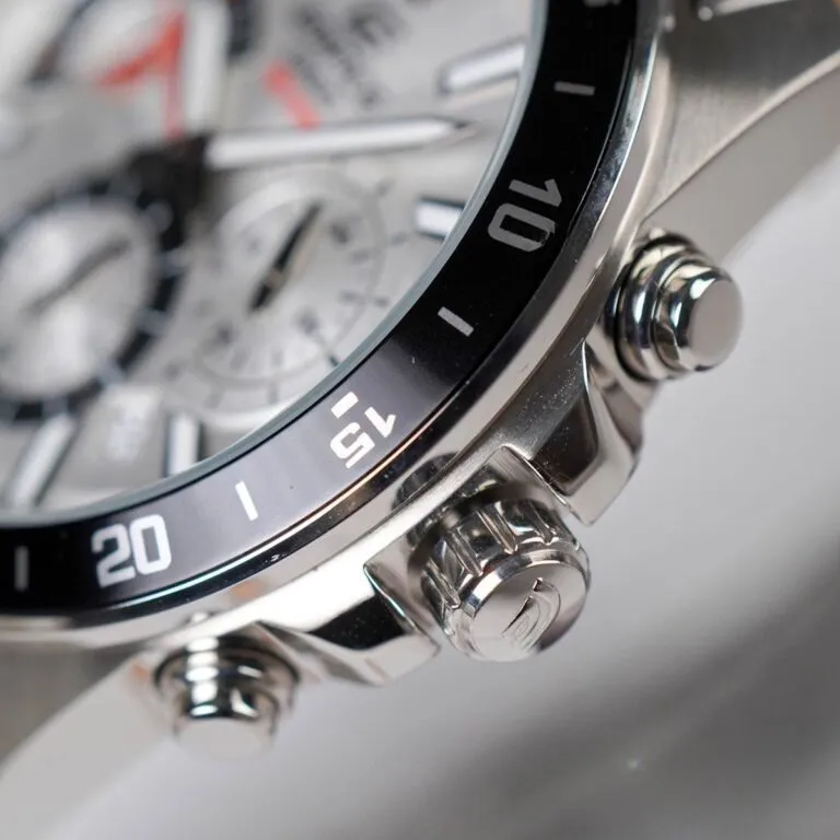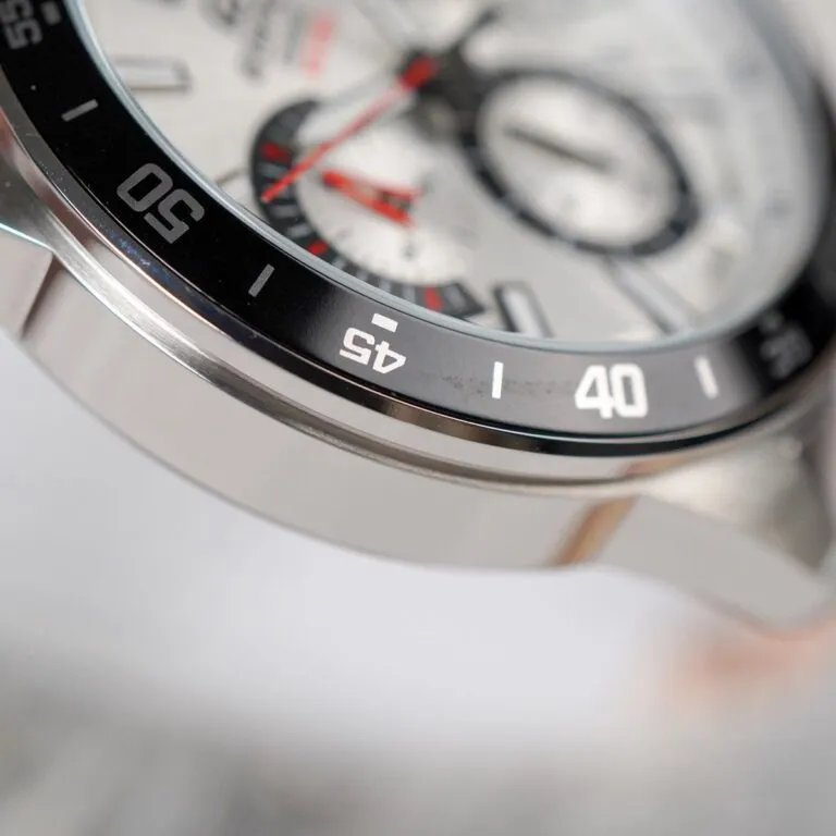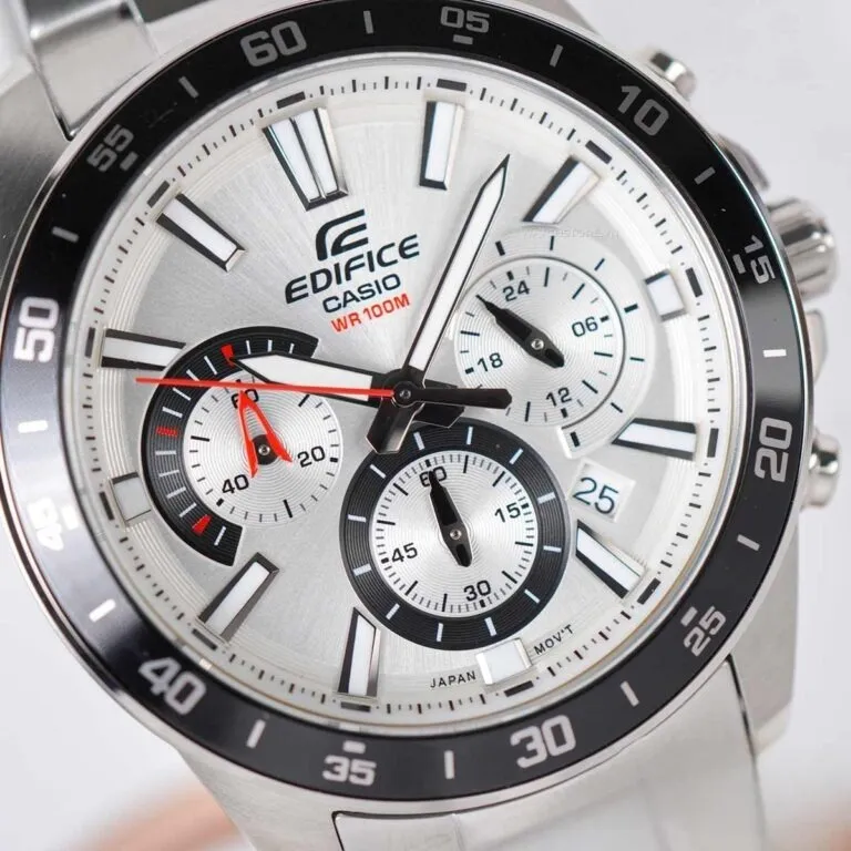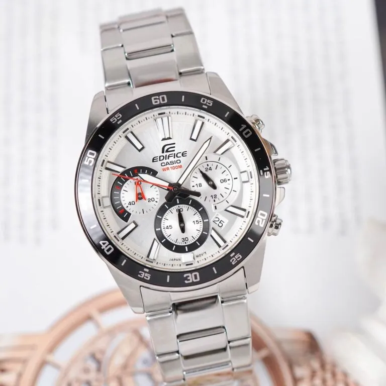 Điểm cuốn hút nhất của Đồng Hồ Casio 43.8mm Nam EFV-570D-7AVUDF chính là mặt số màu trắng bạc (Silver White). Tông màu này không chỉ mang lại cảm giác sạch sẽ, chỉn chu mà còn giúp chiếc đồng hồ trông sang trọng hơn hẳn khi xuất hiện dưới ánh đèn.