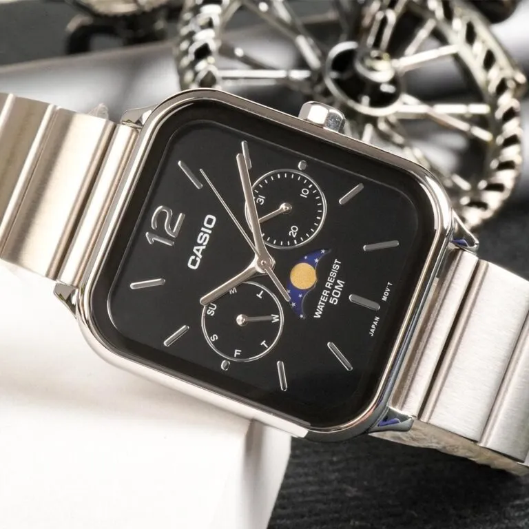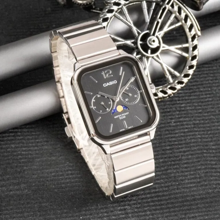 Trong phân khúc đồng hồ thời trang dành cho nam giới, rất hiếm có dòng sản phẩm nào sở hữu sức hút mãnh liệt như các mẫu Moon Phase (Lịch tuần trăng). Với sự xuất hiện của Đồng Hồ Casio 44.5 × 34 mm Nam MTP-M305D-1AVDF, Casio đã một lần nữa khẳng định vị thế dẫn đầu trong việc mang những tính năng xa xỉ đến gần hơn với người dùng phổ thông. Đây không chỉ là một thiết bị đo thời gian, mà là biểu tượng của sự tinh tế và am hiểu nghệ thuật của người sở hữu.